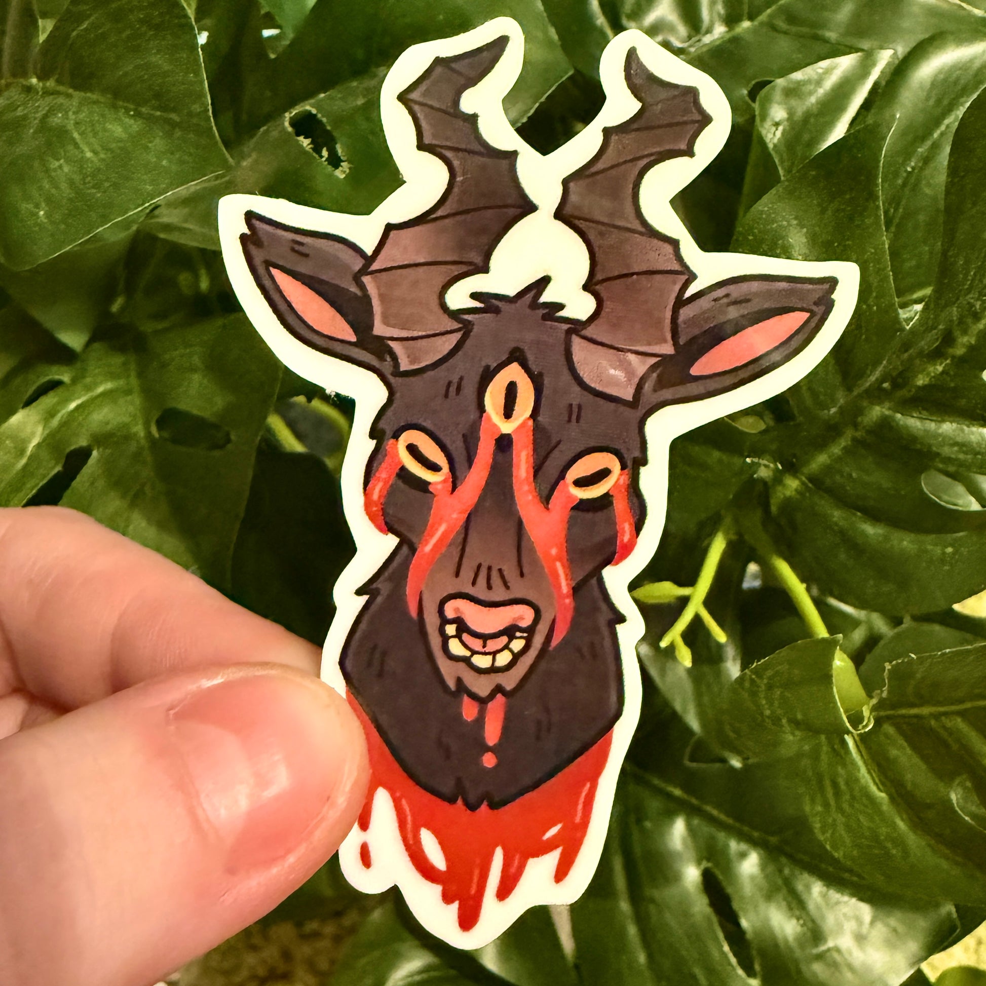 ✦ Get into the halloween spirit with this totally normal and not cursed Bloody Goatman sticker. No, ignore the whispering--thats competely unnrelated.